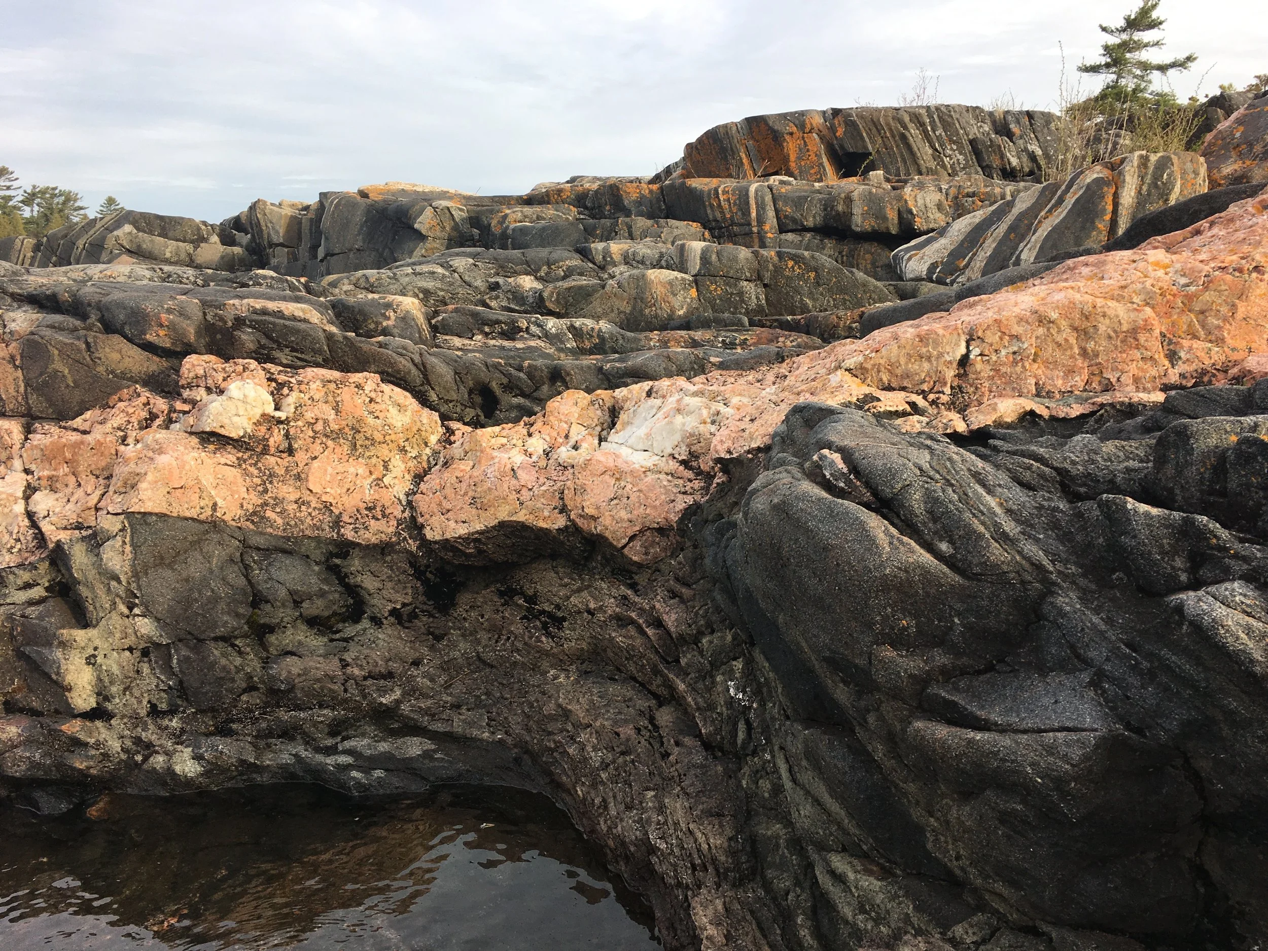 Every year on my annual visit to Georgian Bay, I walk Bartram Island and let my body guide me over the stones. I soften my gaze and let the amazing striped stones reveal their stories to me – some I’ve heard before, some with a new twist, and sometimes a whole new theme. Toward the end of my stay, I often narrow my gentle search and meditative dialogue to a single stone, asking it if it wants to travel home with me. Occasionally, these island conversations have been with snakes but this year it was again the stones that called me.